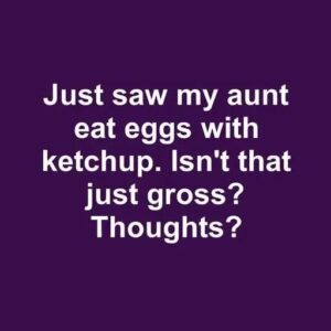 “Caught my aunt adding ketchup to her eggs. Yikes! What do you think?”