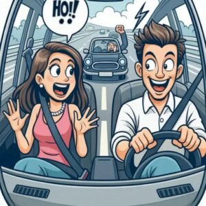 The husband is behind the wheel. His wife suddenly looks across at him and speaks in a clear voice. “I know we have been married for over…