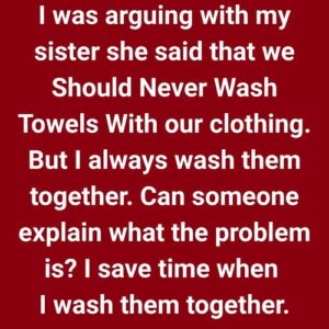 I was arguing with my sister. She said that we should never wash towels with our clothing.