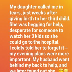 My daughter called me in tears, just weeks after giving birth to her third child. She was begging for help, desperate for someone to watch her kids…