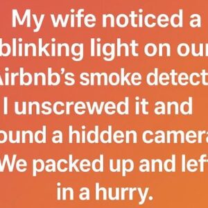 My wife noticed a blinking light on our Airbnb’s smoke detector. I unscrewed it and found a hidden camera. Heart racing, I showed her, and we packed…