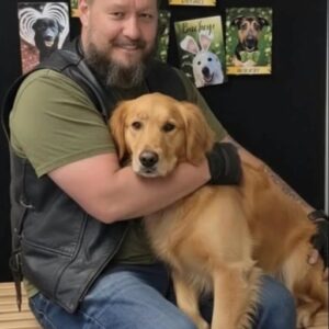 I almost rode right past her. A golden shadow chained to the cold metal railing, whimpering so softly the wind nearly stole the sound. It was 3…