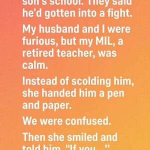 I got a call from my son’s school. They said he’d gotten into a fight. My husband and I were furious, but my MIL, a retired teacher,…
