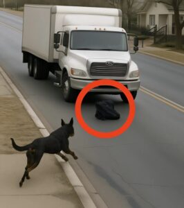 The dog didn’t run away. It circled around the truck and stood beside the dark bundle, barking and staring straight at the man, as if trying to call him over.
