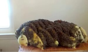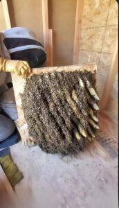 And there, to my surprise, I discovered a huge beehive! Yes, a real swarm was lodged under the floor, in a hidden corner.